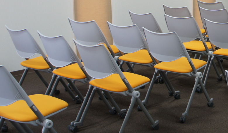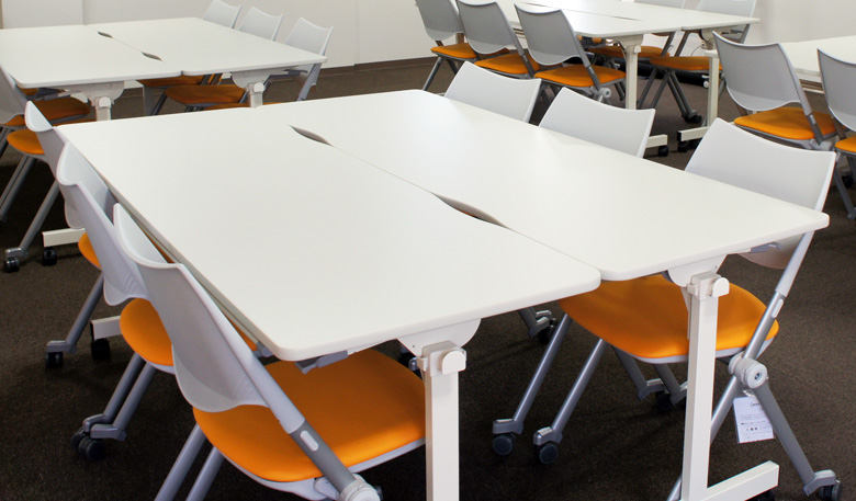 折りたたむことができ、タイヤも付いているので、レイアウト変更も簡単にできます